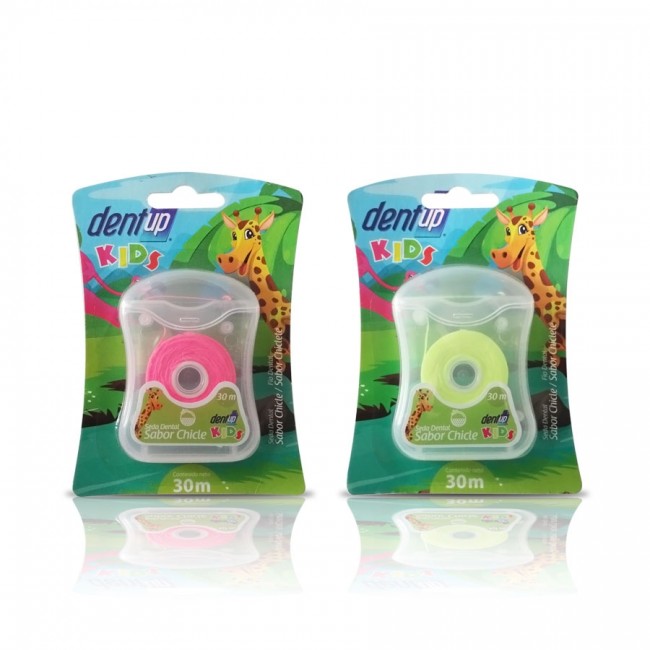 O Fio Dental Dentup Kids 30m tem embalagem diferente, cor vibrante e sabor único desenvolvido com muito carinho para as crianças.