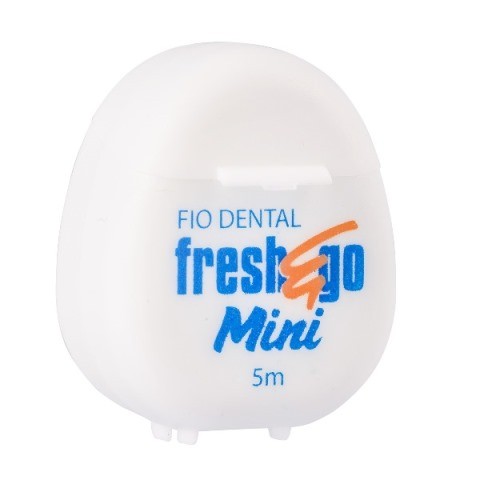 O Fio Dental Fresh & Go Mini 5m com 6 unidades é acondicionado em box transparente.